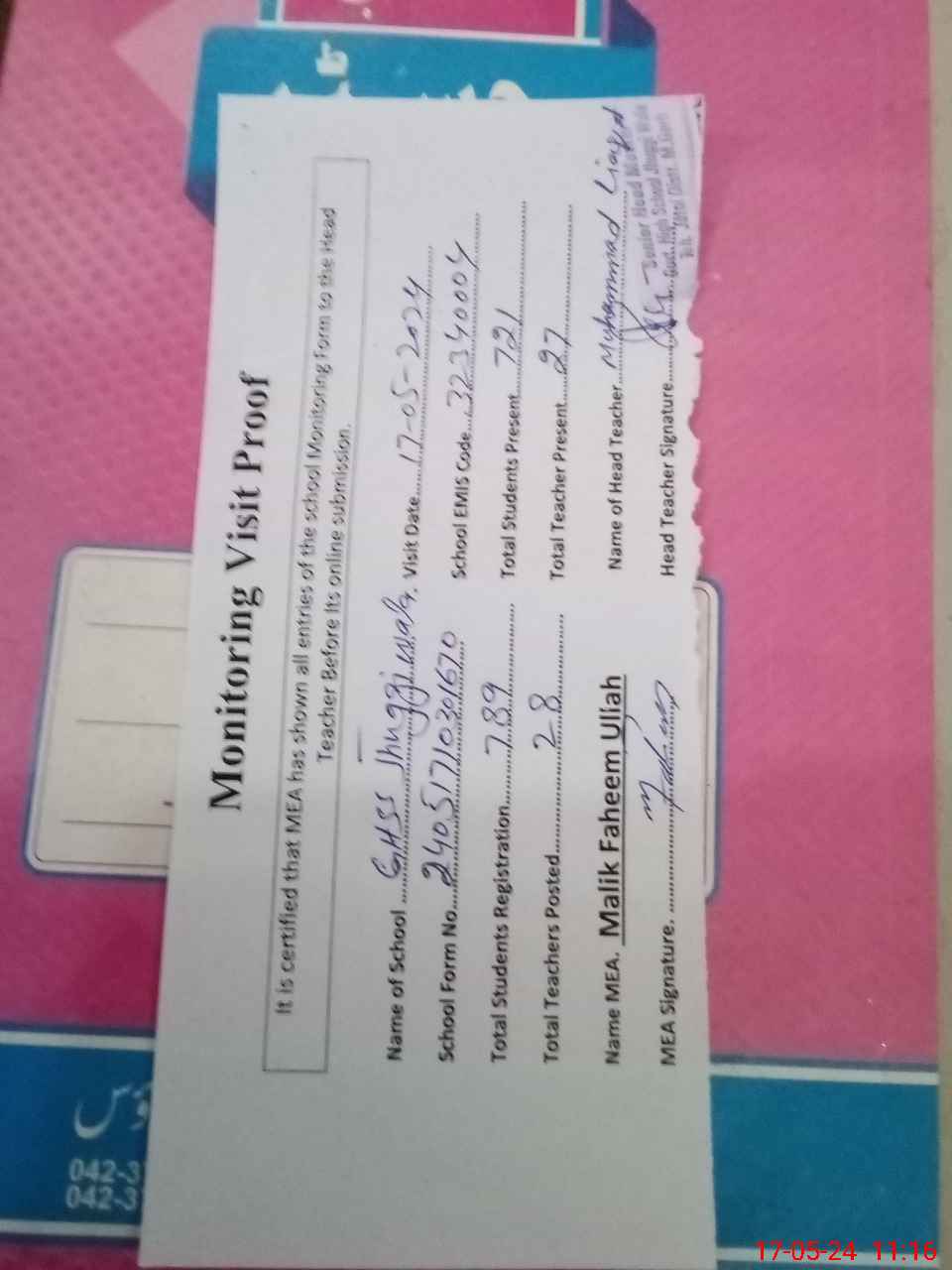 | EMIS Code: 32340004 | Name of School: GHSS JHUGGI WALA | |||