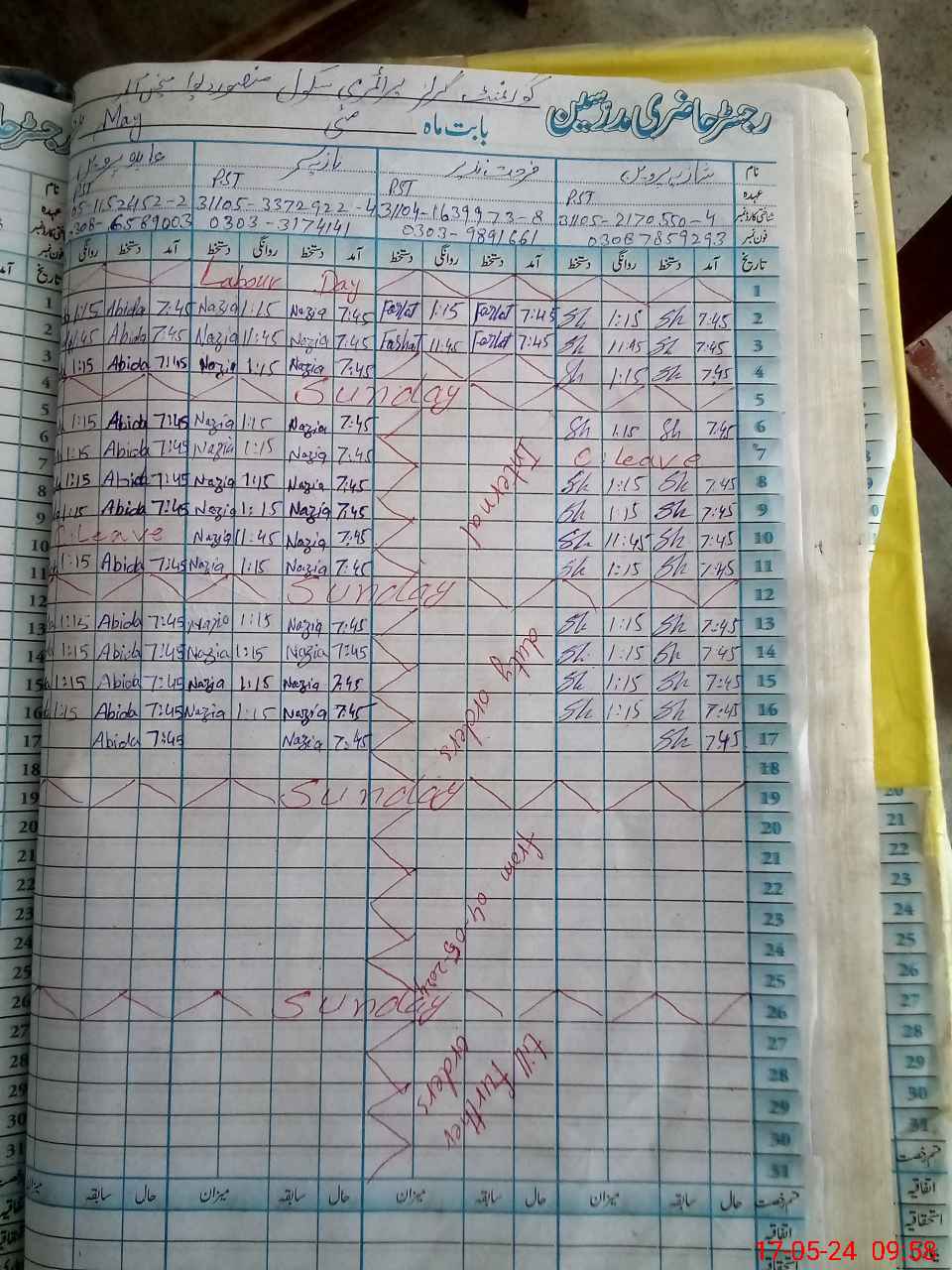 | CNIC | Full Name | Designation | R/C | Absence During Last Calender Month |