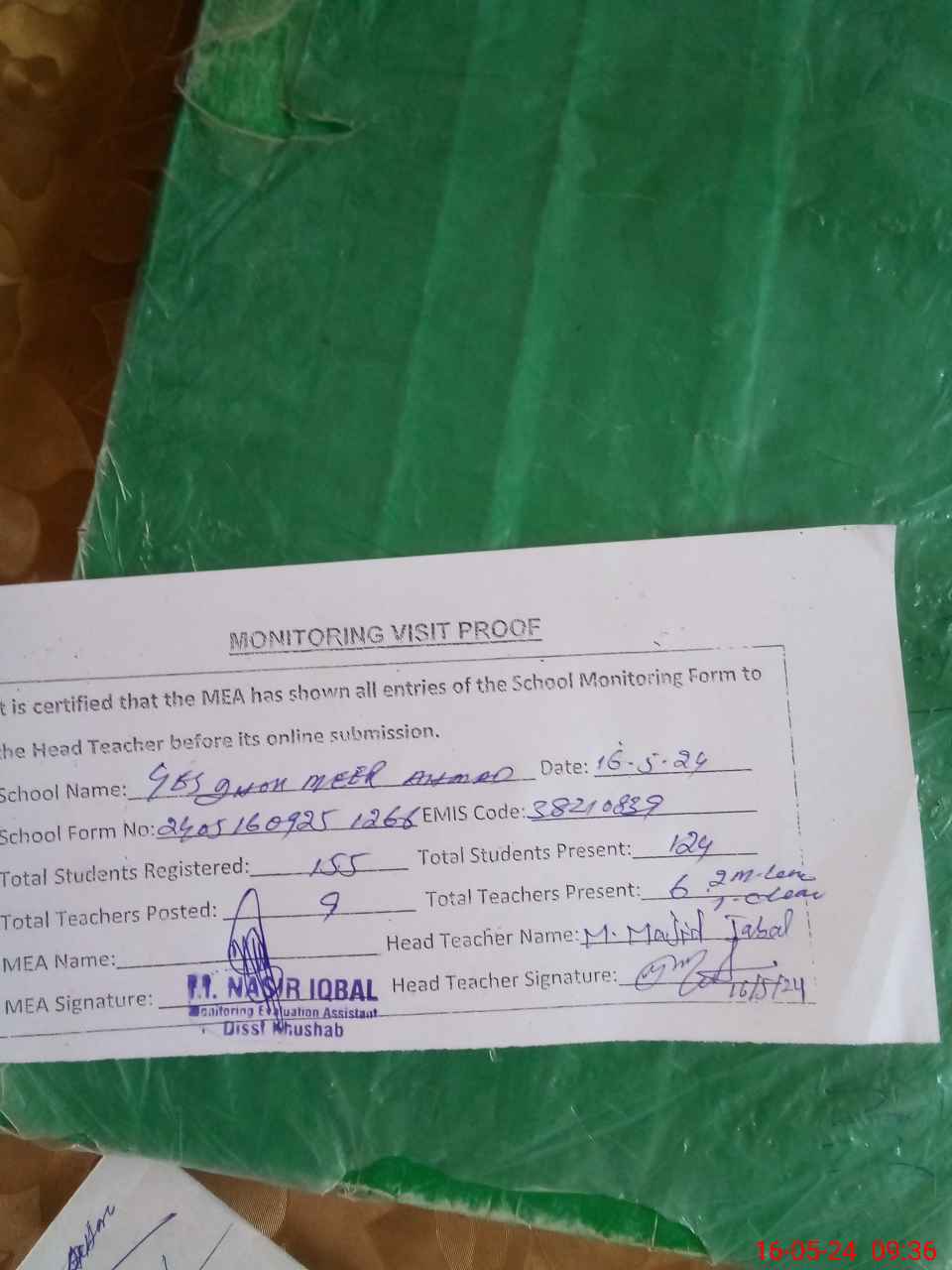 | Certified that this School was Inspected by the Undersigned MEA/DMO Today and the Information Stated Above is as Per Record. | |||||