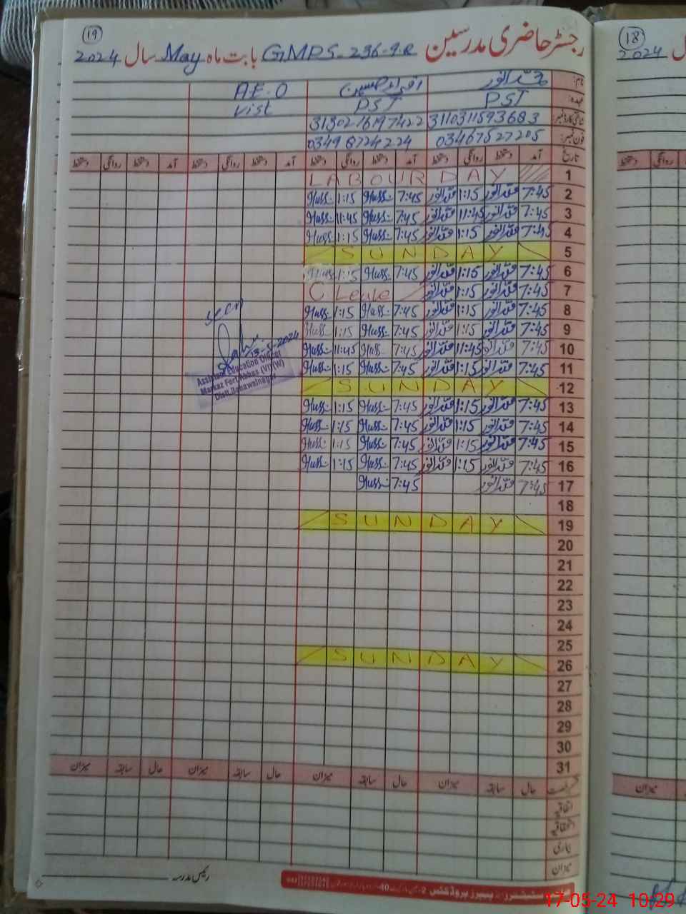 | Name: Iq**** Hu**** Designation: (School Headmaster's/Headmistress's) PST Phone/Cell Number: 03**** |