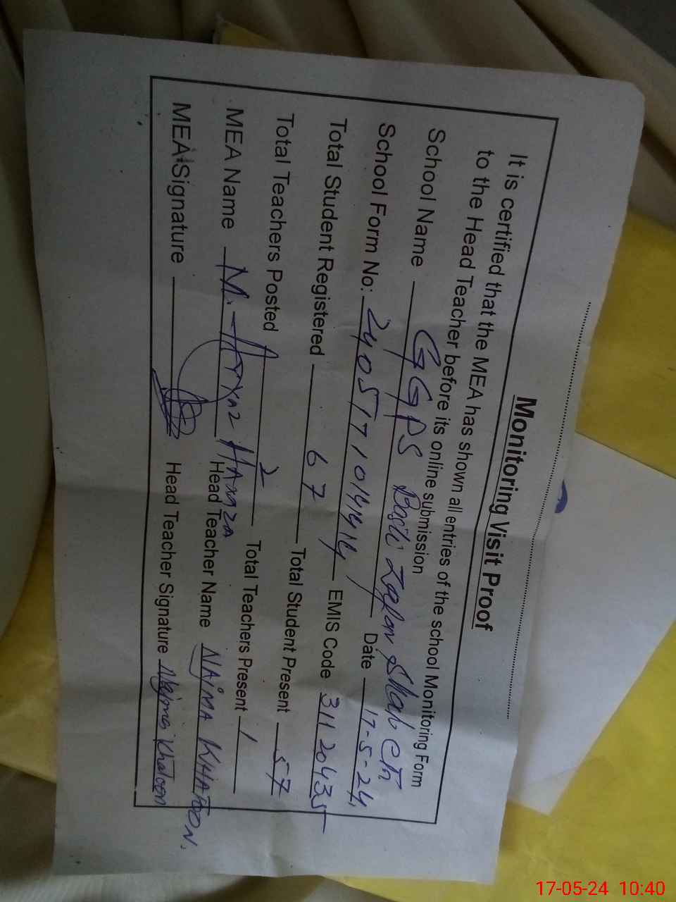 | EMIS Code: 31120435 | Name of School: GGPS BASTI ZAFAR SHAH | |||