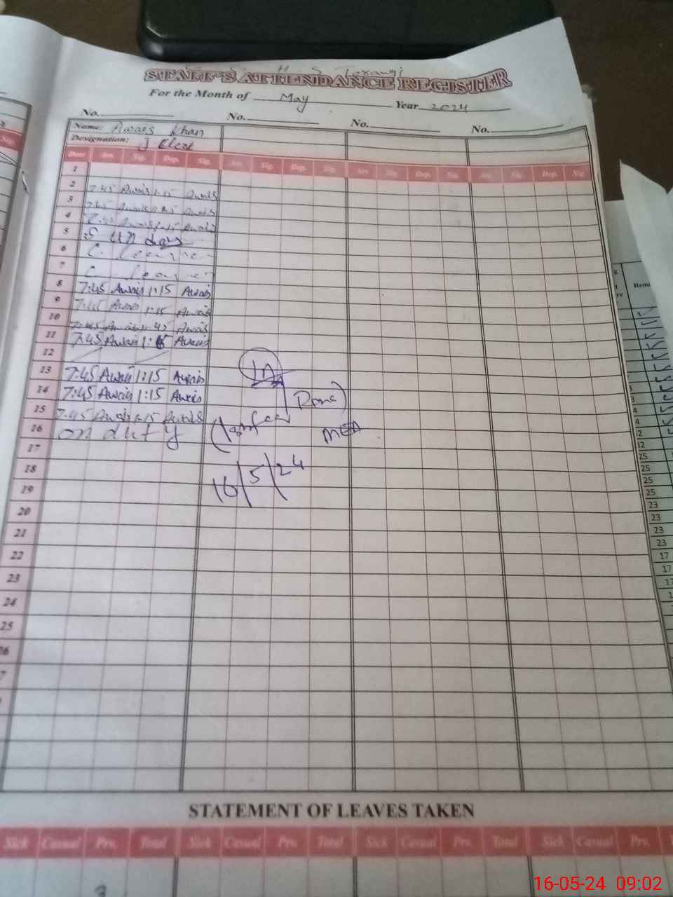 | 38**** | Aw**** Kh**** | JUNIOR CLERK | Regular | 0 | 0 | 0 | 0 | 0 | 0 | 0 | 0 | 0 | Absent (Un-Authorized) |