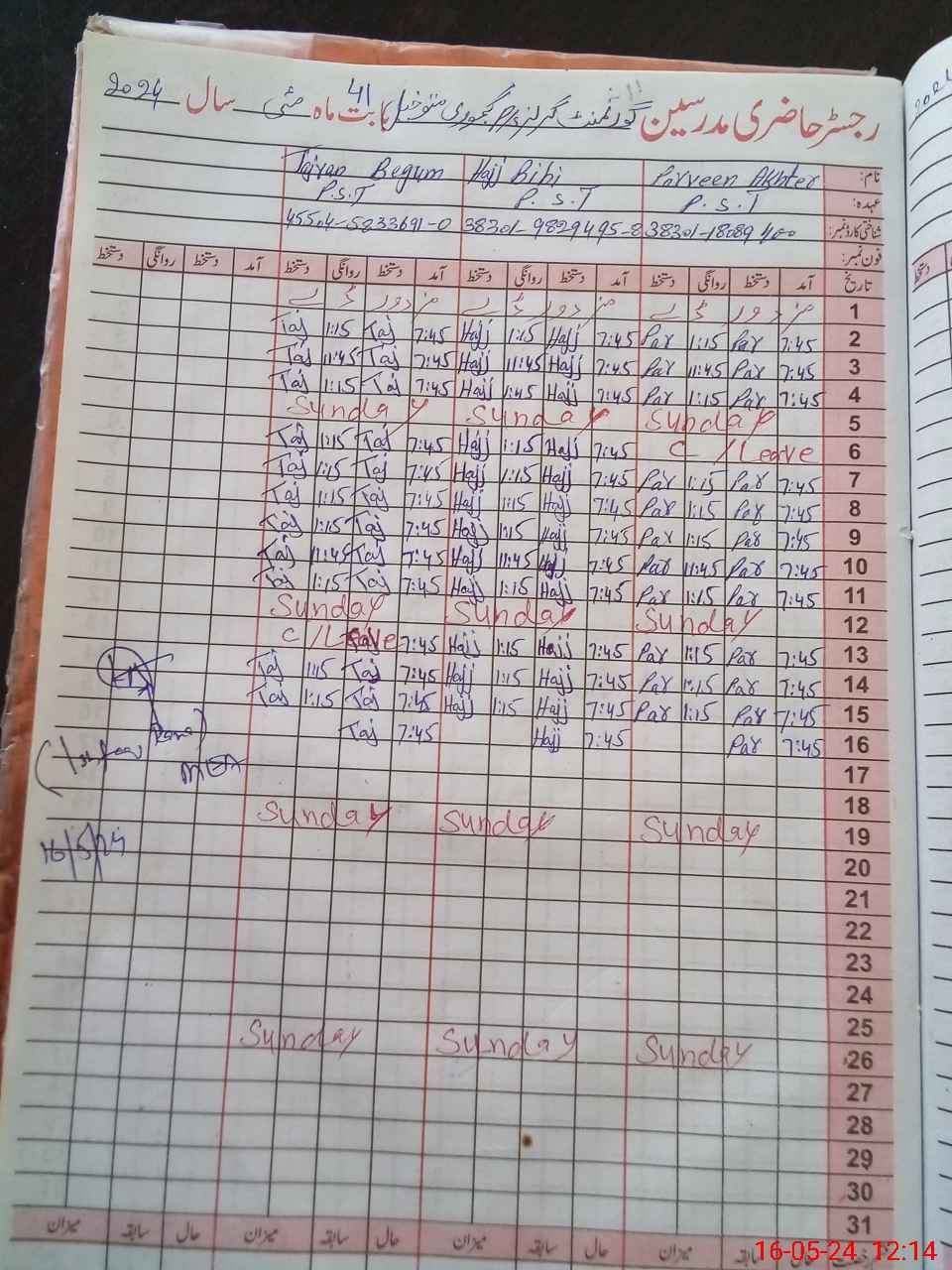 | CNIC | Full Name | Designation | R/C | Absence During Last Calender Month |