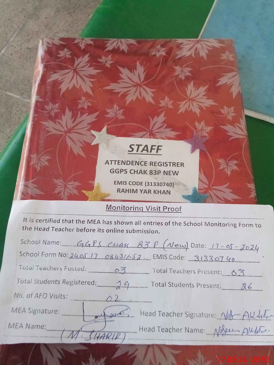 | EMIS Code: 31330740 | Name of School: GGPS CHAK NO. 83/P NEW | |||