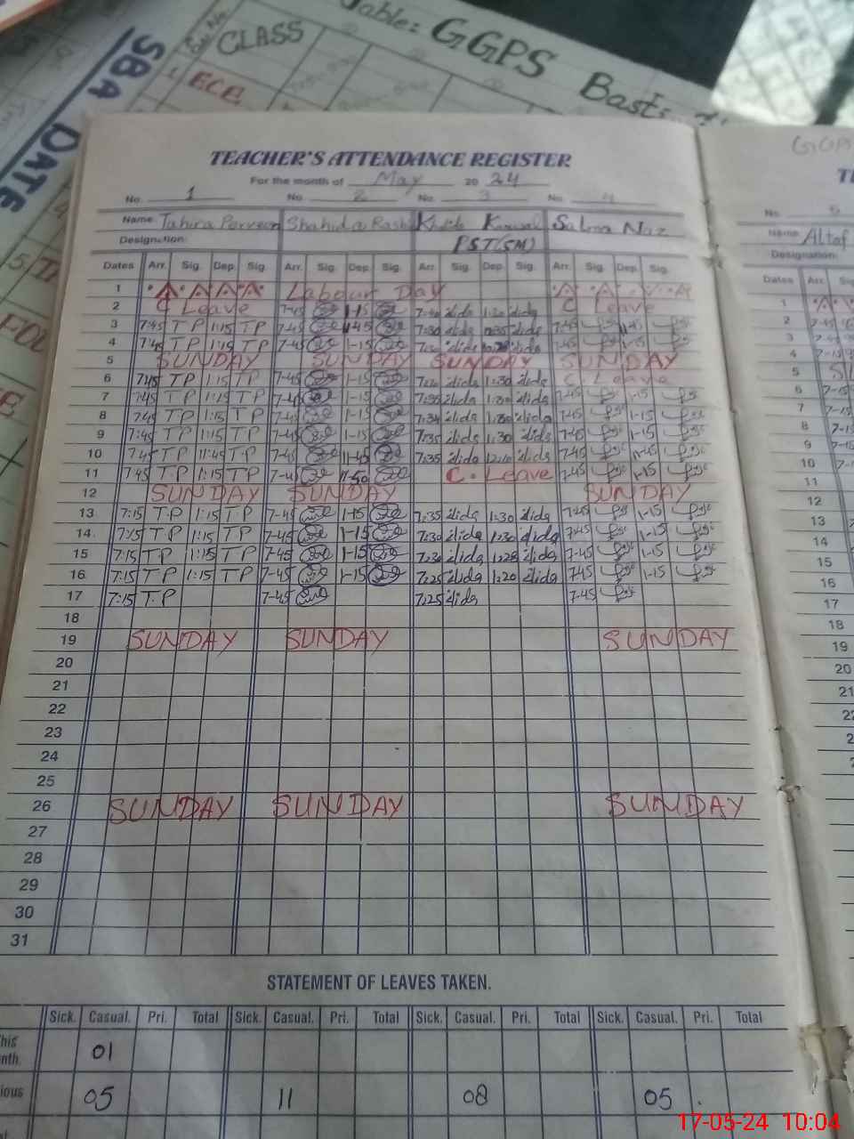 | Leave | Duty | Absent | Maternity | Medical | Ex- Pak |