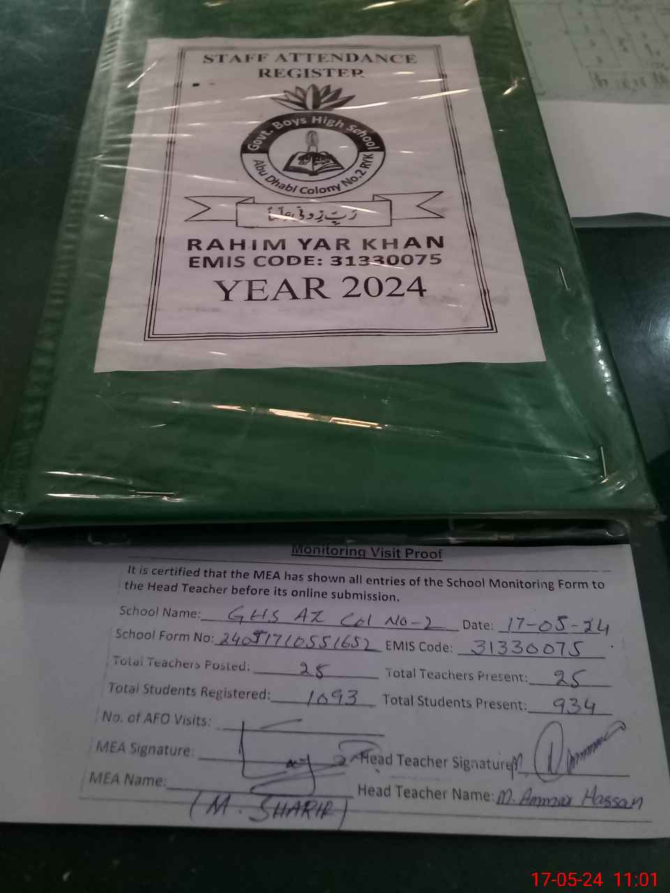 | Attendance Register | Head Teacher | MEA with School | Visit Proof |