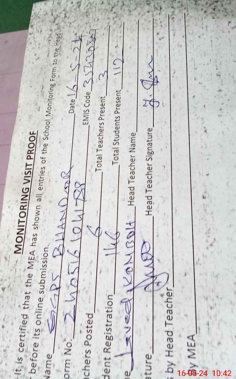 | Attendance Register | Head Teacher | MEA with School | Visit Proof |