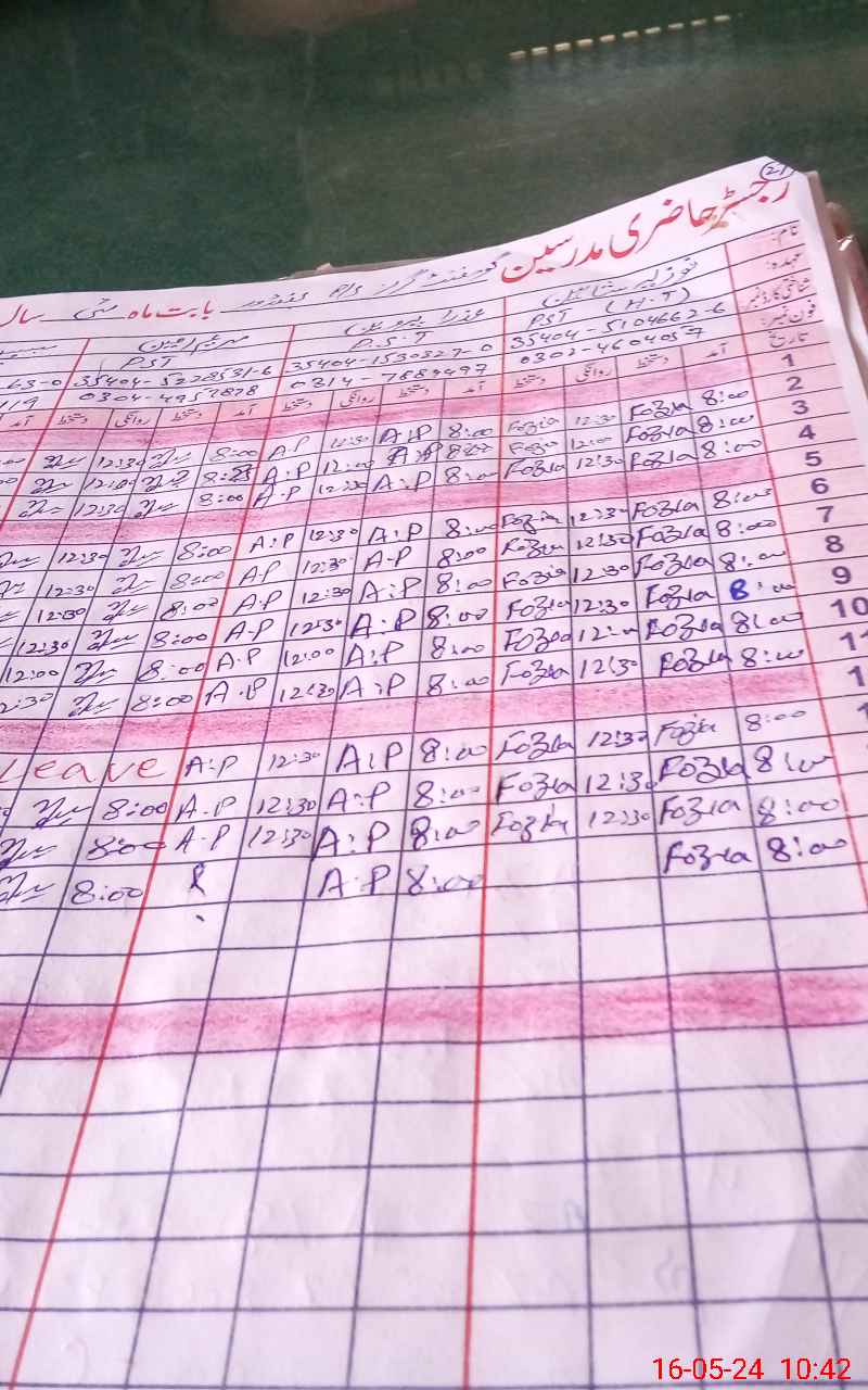 | CNIC | Full Name | Designation | R/C | Absence During Last Calender Month |