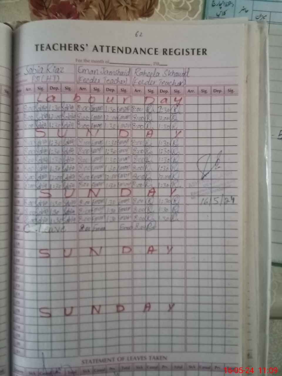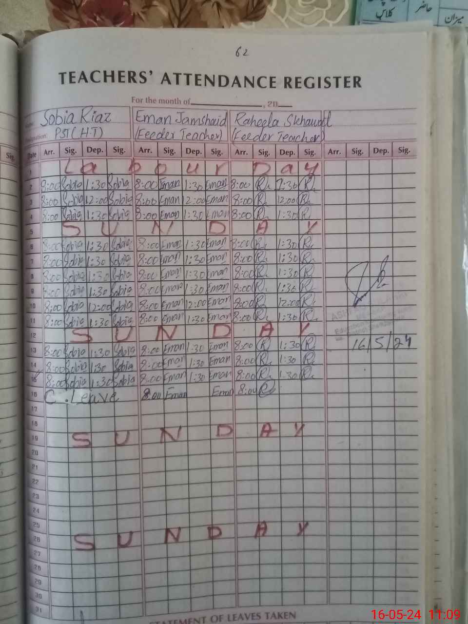 | CNIC | Full Name | Designation | R/C | Absence During Last Calender Month |