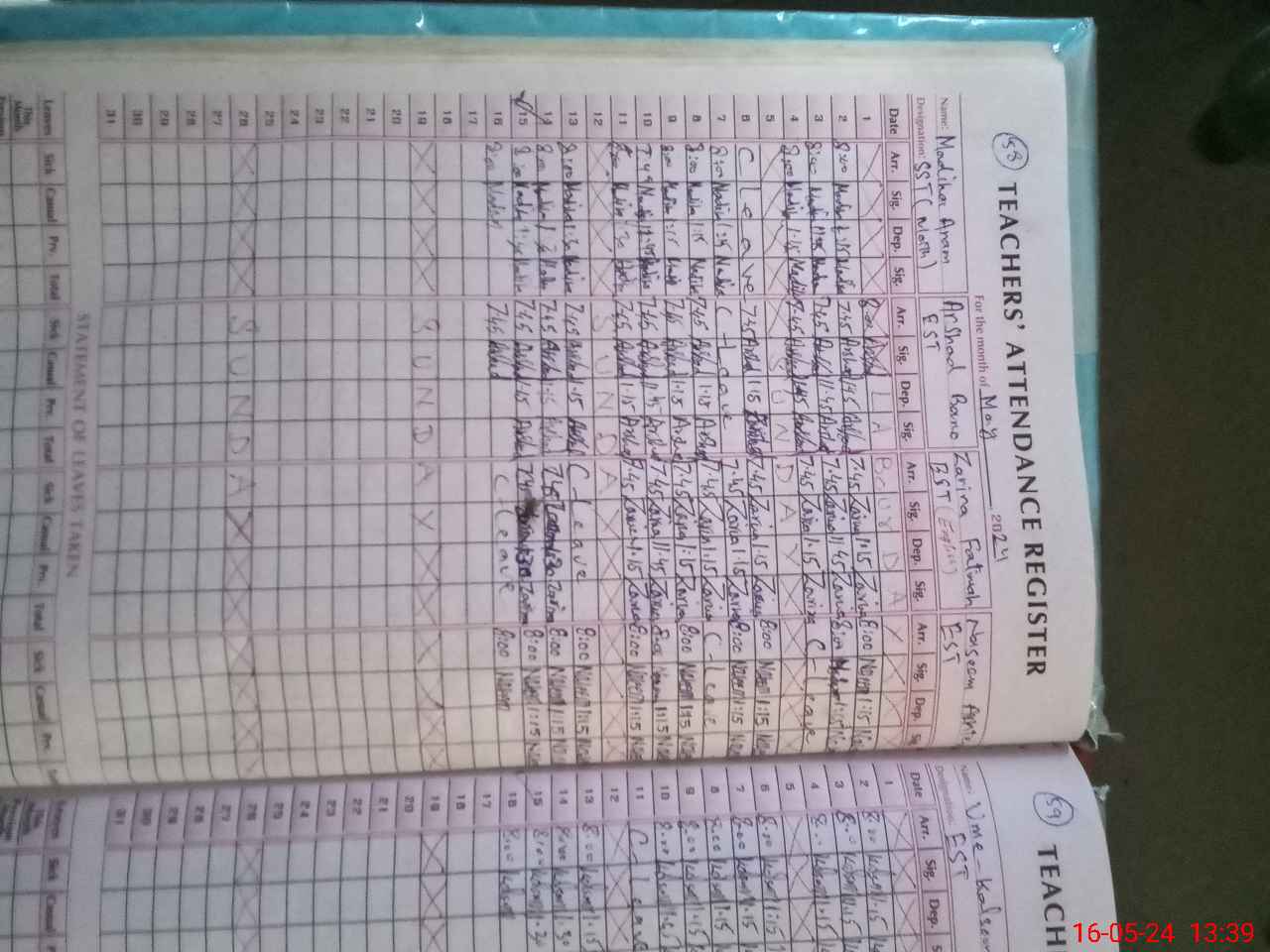 | Leave | Duty | Absent | Maternity | Medical | Ex- Pak |