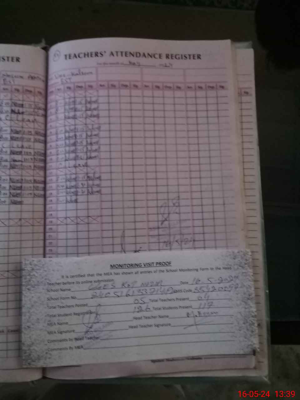 | Attendance Register | Head Teacher | MEA with School | Visit Proof |