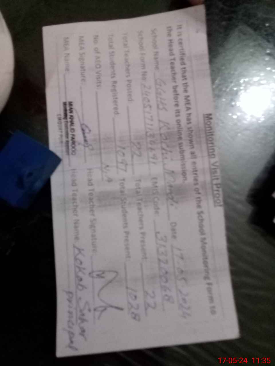 | Monitoring Date: 17-05-2024 | Start Time: 17-05-2024 10:26 AM | End Time: 17-05-2024 11:35 AM | Name of MEA: Kh**** Fa**** | |