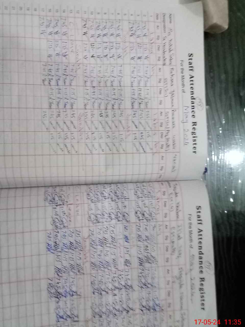 | CNIC | Full Name | Designation | R/C | Absence During Last Calender Month |