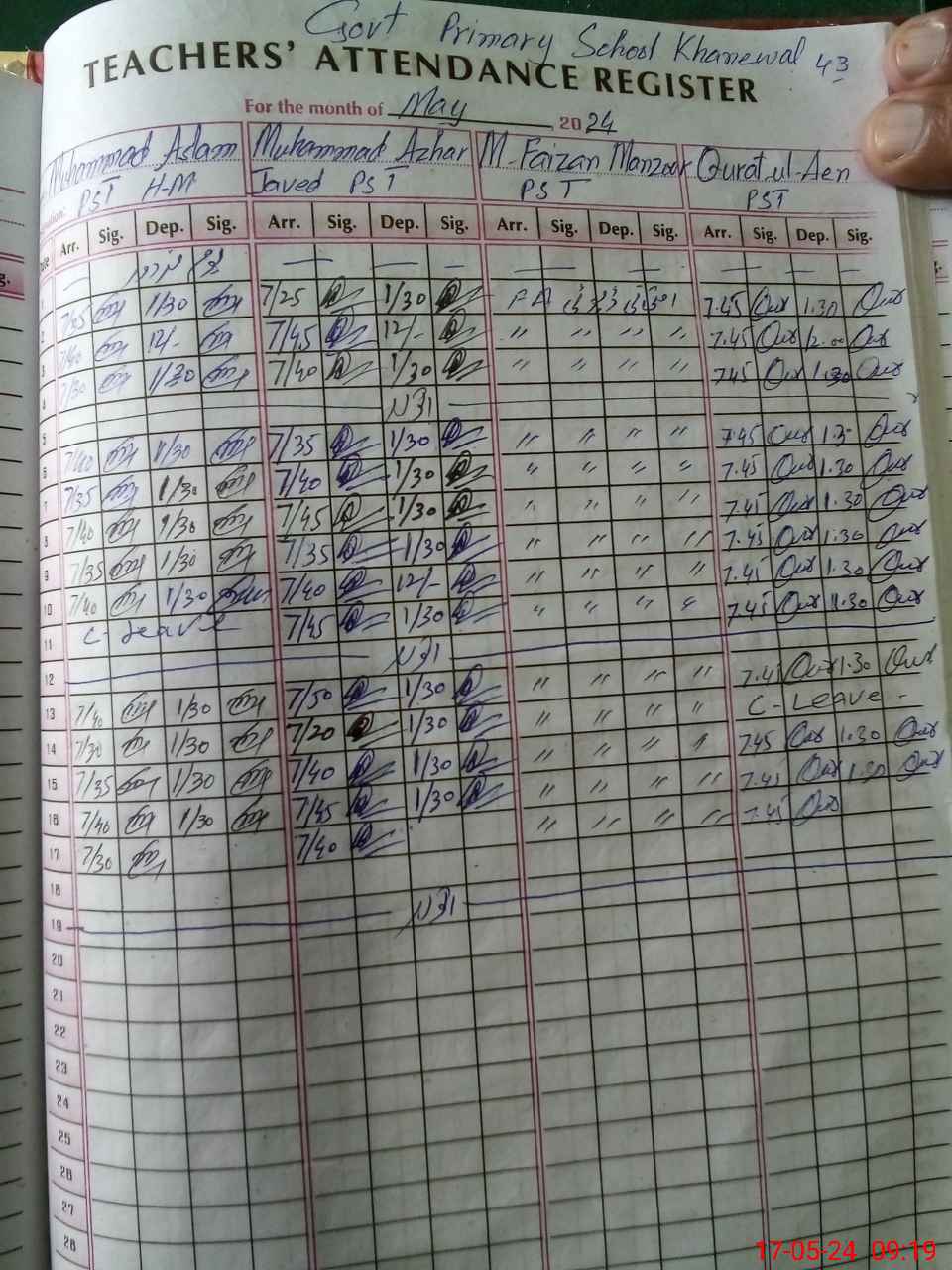 | 36**** | Mu**** Fa**** Ma**** | PST | Regular | 0 | 0 | 0 | 0 | 0 | 0 | 0 | 0 | 0 | Exam Duty |