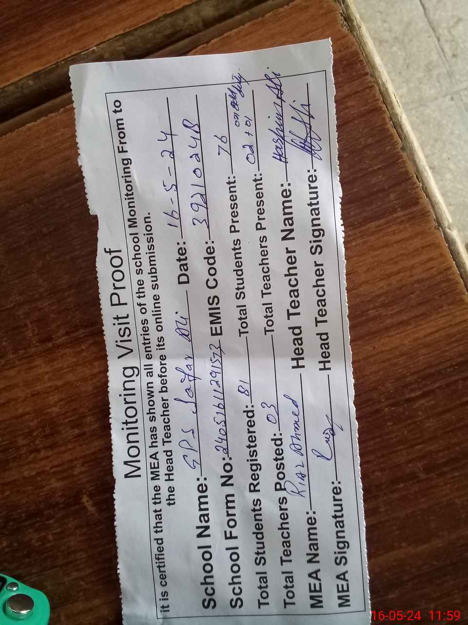 | EMIS Code: 39210248 | Name of School: GPS JAFAR ALI SHAH PO MALKA HANS | |||