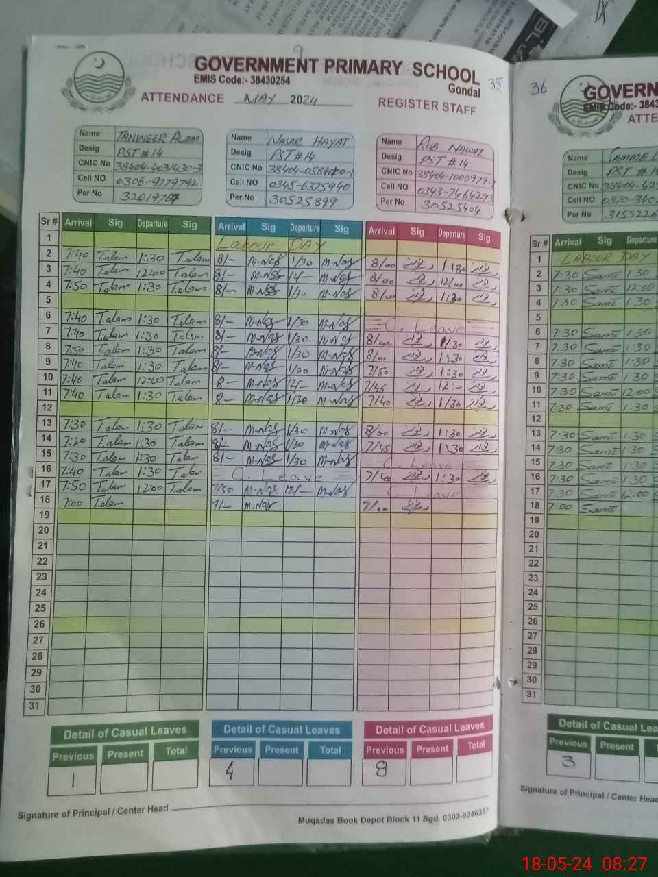 | CNIC | Full Name | Designation | R/C | Absence During Last Calender Month |
