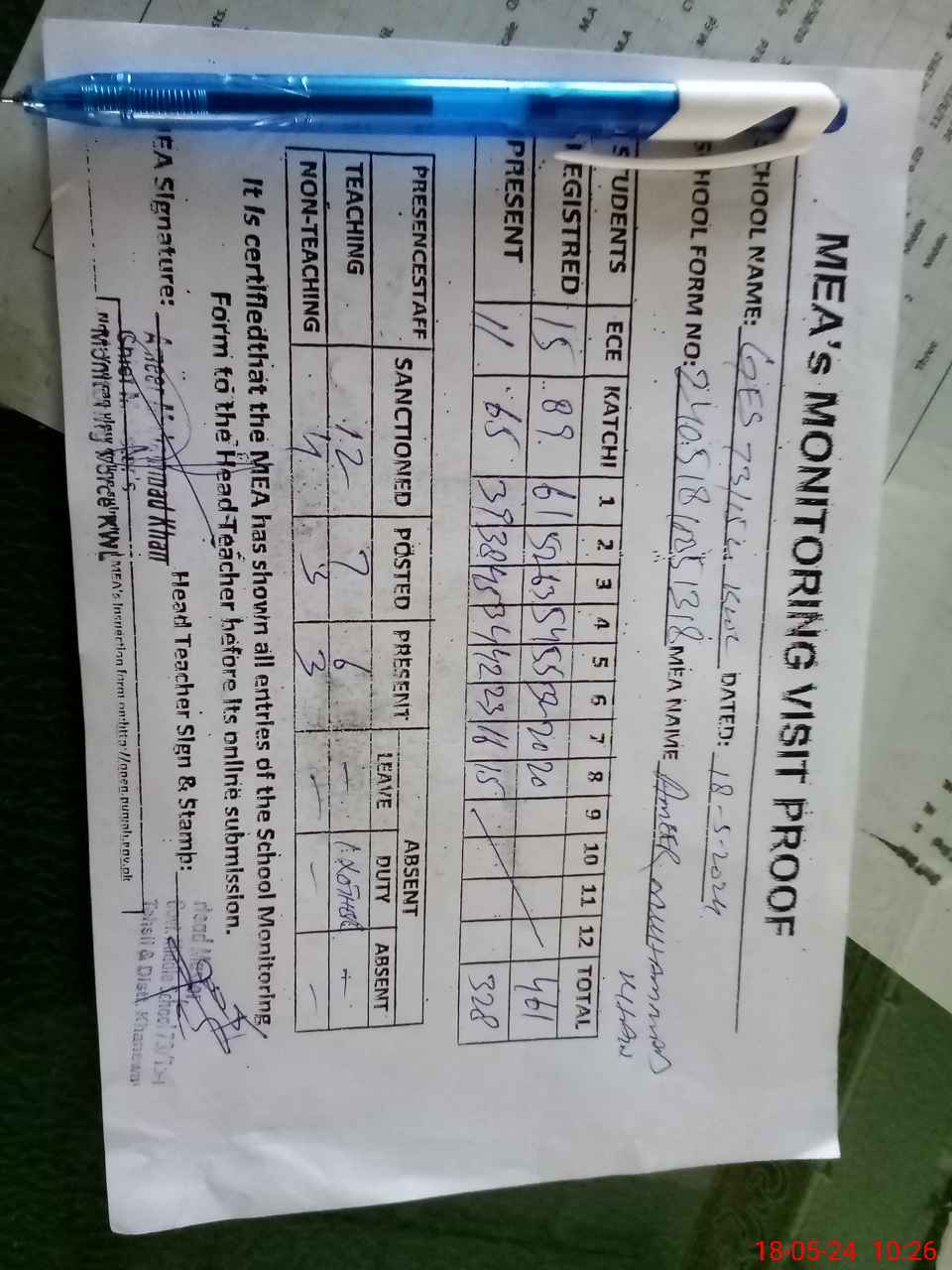 | Certified that this School was Inspected by the Undersigned MEA/DMO Today and the Information Stated Above is as Per Record. | |||||