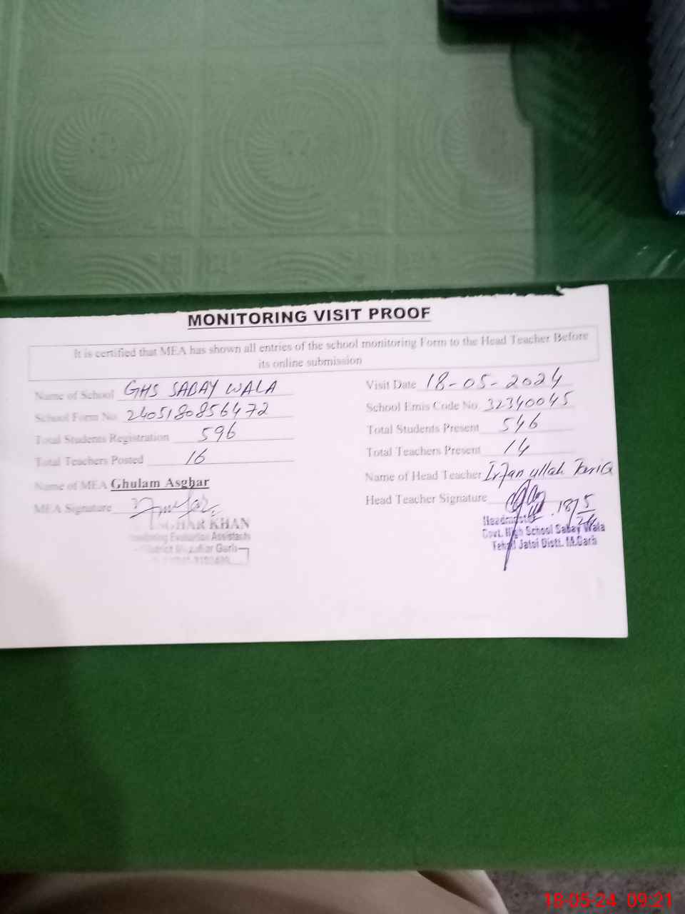| EMIS Code: 32340045 | Name of School: GHS SABAY WALA | |||
