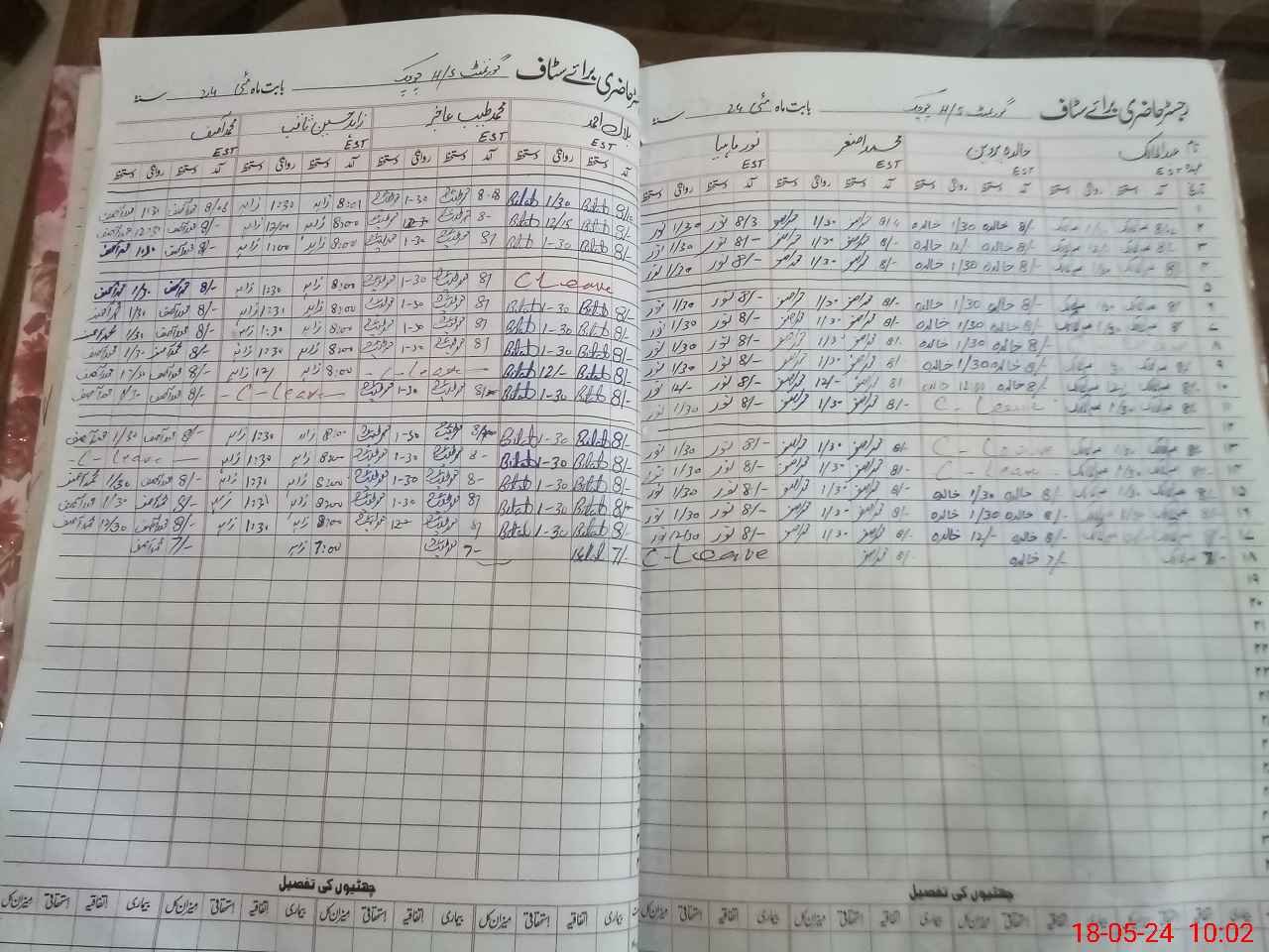 | CNIC | Full Name | Designation | R/C | Absence During Last Calender Month |