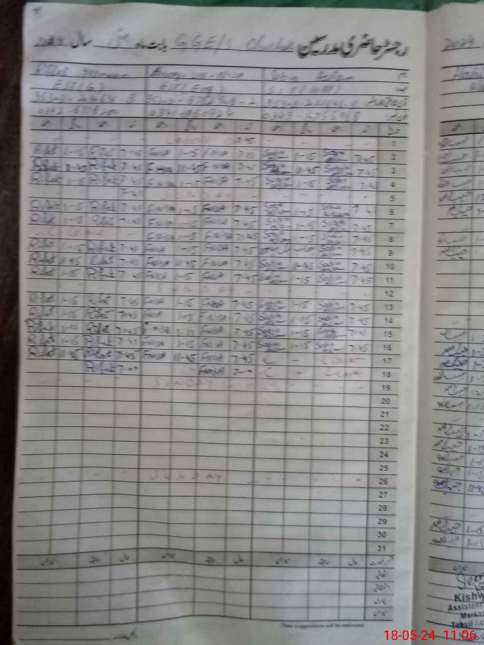 | CNIC | Full Name | Designation | R/C | Absence During Last Calender Month |