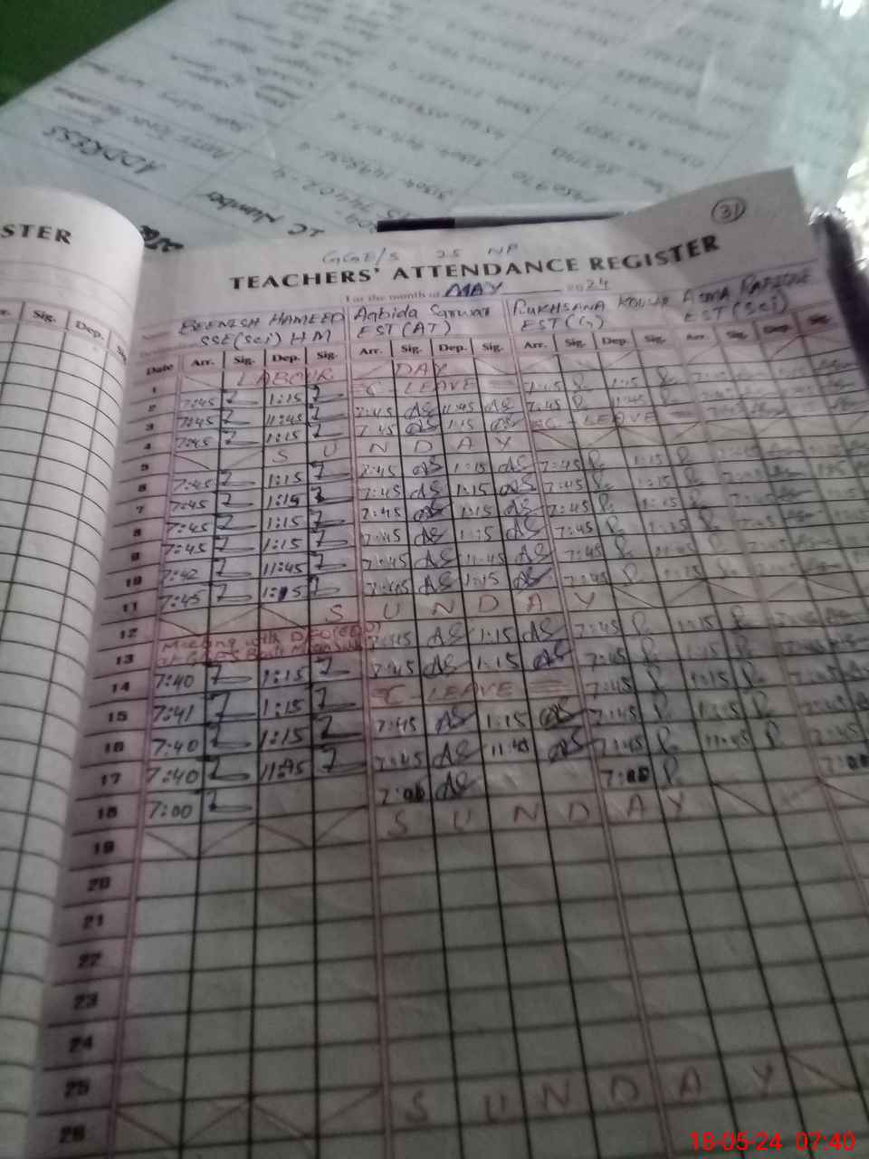 | Monitoring Date: 18-05-2024 | Start Time: 18-05-2024 07:37 AM | End Time: 18-05-2024 08:10 AM | Name of MEA: Mu**** Ak**** Ba**** | |