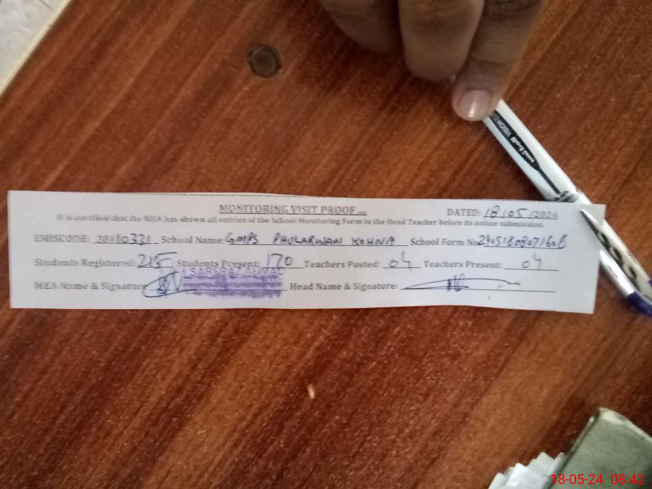| EMIS Code: 38410331 | Name of School: GMPS PHULARWAN KOHNA | |||