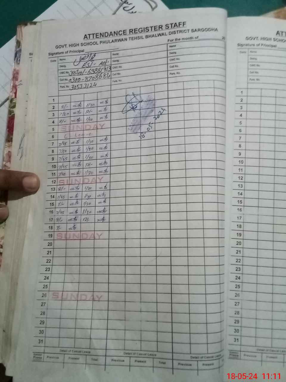 | Name: Fa**** Ah**** Ra**** Designation: (School Headmaster's/Headmistress's) Principal Phone/Cell Number: 03**** |