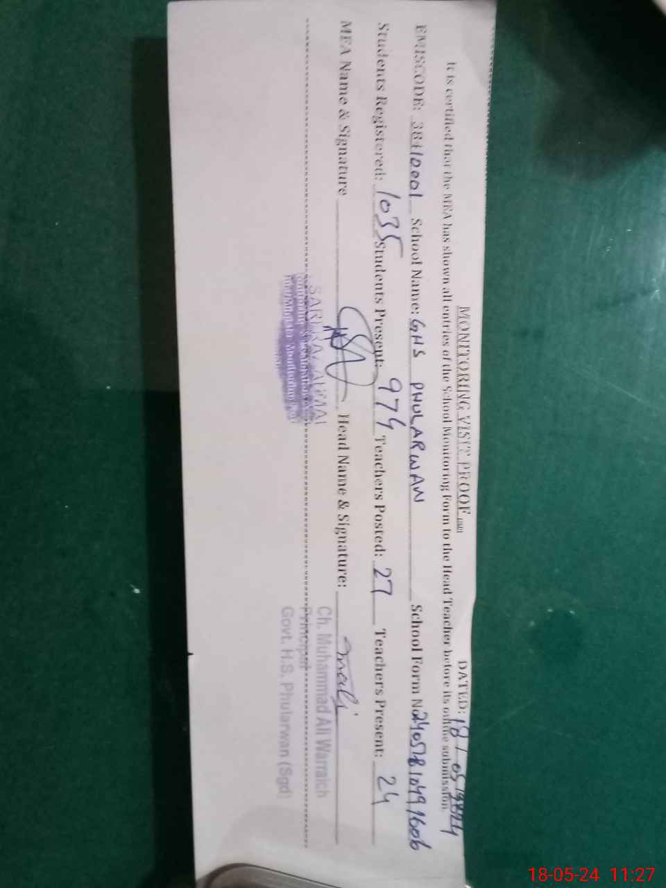 | EMIS Code: 38410001 | Name of School: GHS PHULARWAN | |||