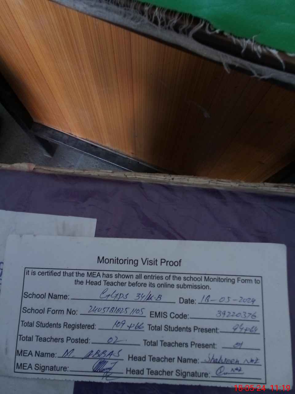 | EMIS Code: 39220376 | Name of School: GGPS 34 KB | |||