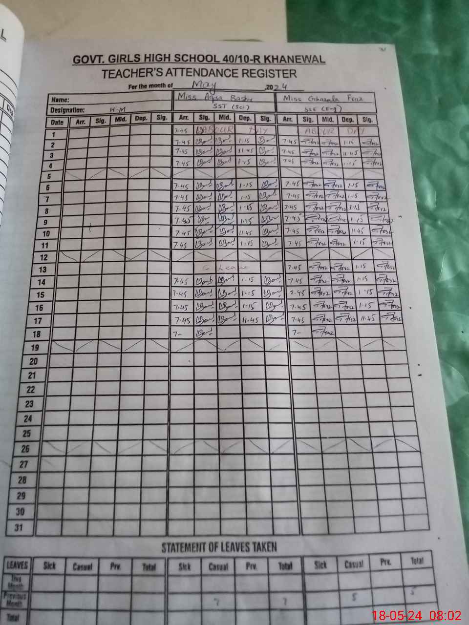 | Name: Gh**** Fr**** Designation: (School Headmaster's/Headmistress's) In HM Phone/Cell Number: 03**** |