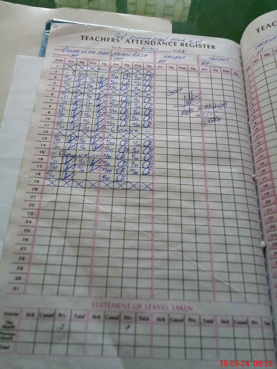 | Name: Ha**** Ra**** Designation: (School Headmaster's/Headmistress's) PST Phone/Cell Number: 03**** |