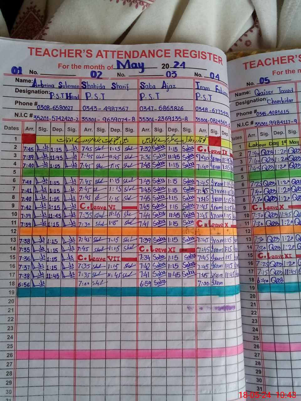 | CNIC | Full Name | Designation | R/C | Absence During Last Calender Month |