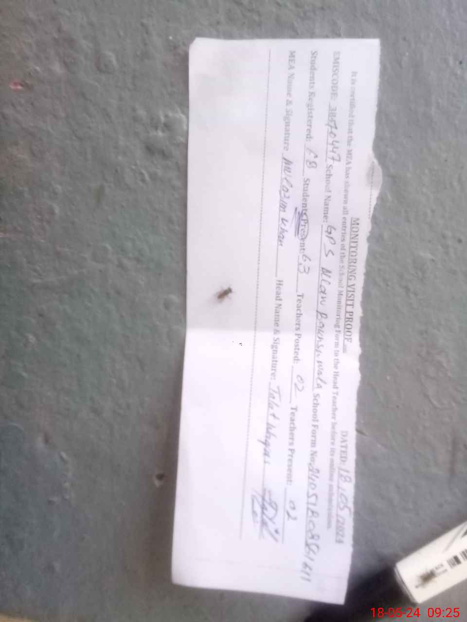 | Attendance Register | Head Teacher | MEA with School | Visit Proof |