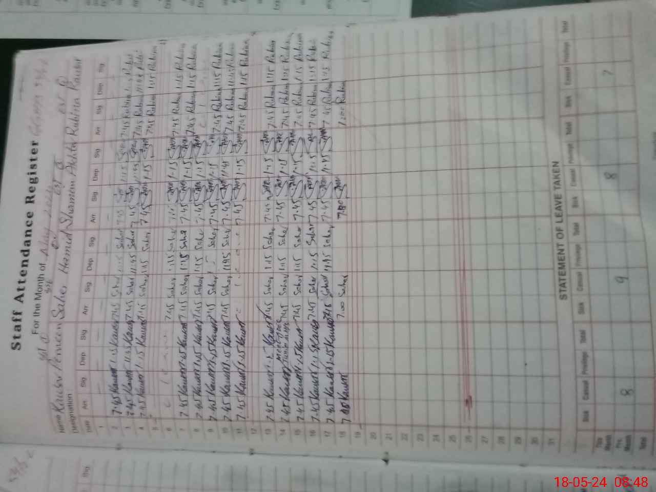 | 36**** | Sh**** Na**** | PST | Regular | 0 | 0 | 0 | 0 | 0 | 0 | 0 | 0 | 0 | Casual |