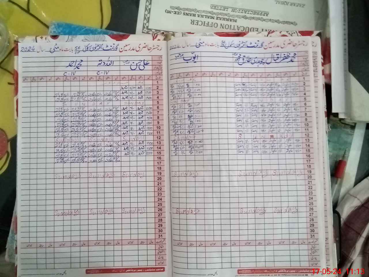 | CNIC | Full Name | Designation | R/C | Absence During Last Calender Month |