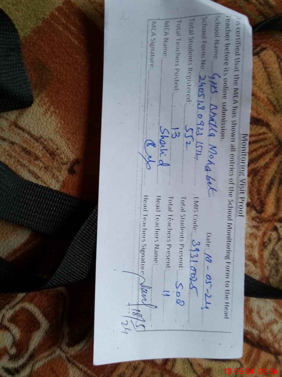| Certified that this School was Inspected by the Undersigned MEA/DMO Today and the Information Stated Above is as Per Record. | |||||