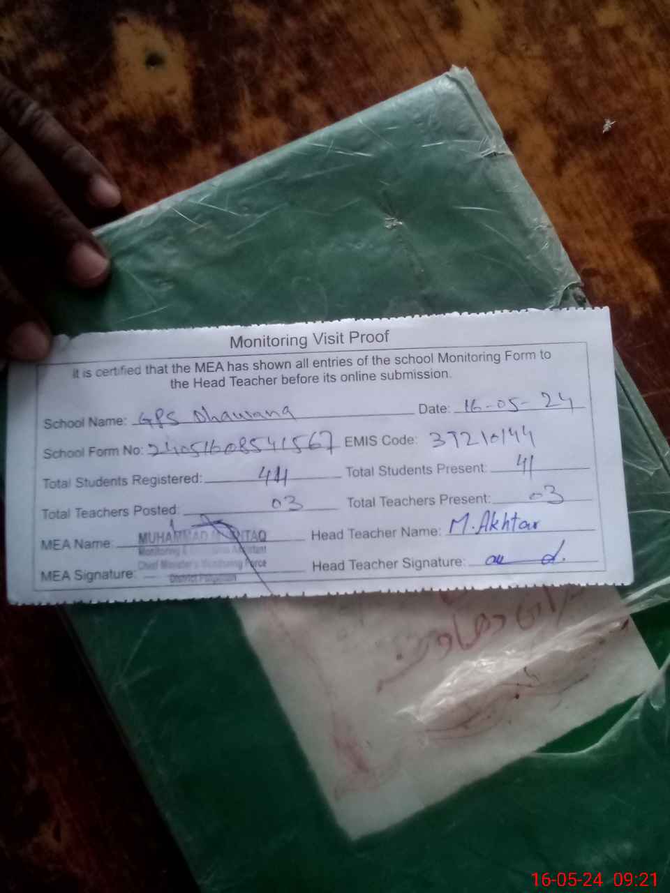 | EMIS Code: 39210144 | Name of School: GPS DHAWANA | |||
