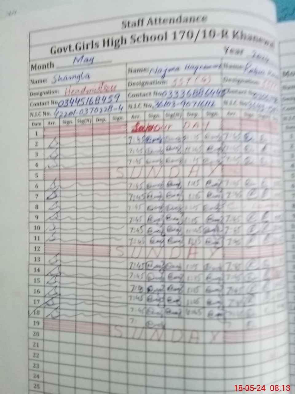 | Name: Sh**** Er**** Wa**** Designation: (School Headmaster's/Headmistress's) Head Mistress Phone/Cell Number: 03**** |