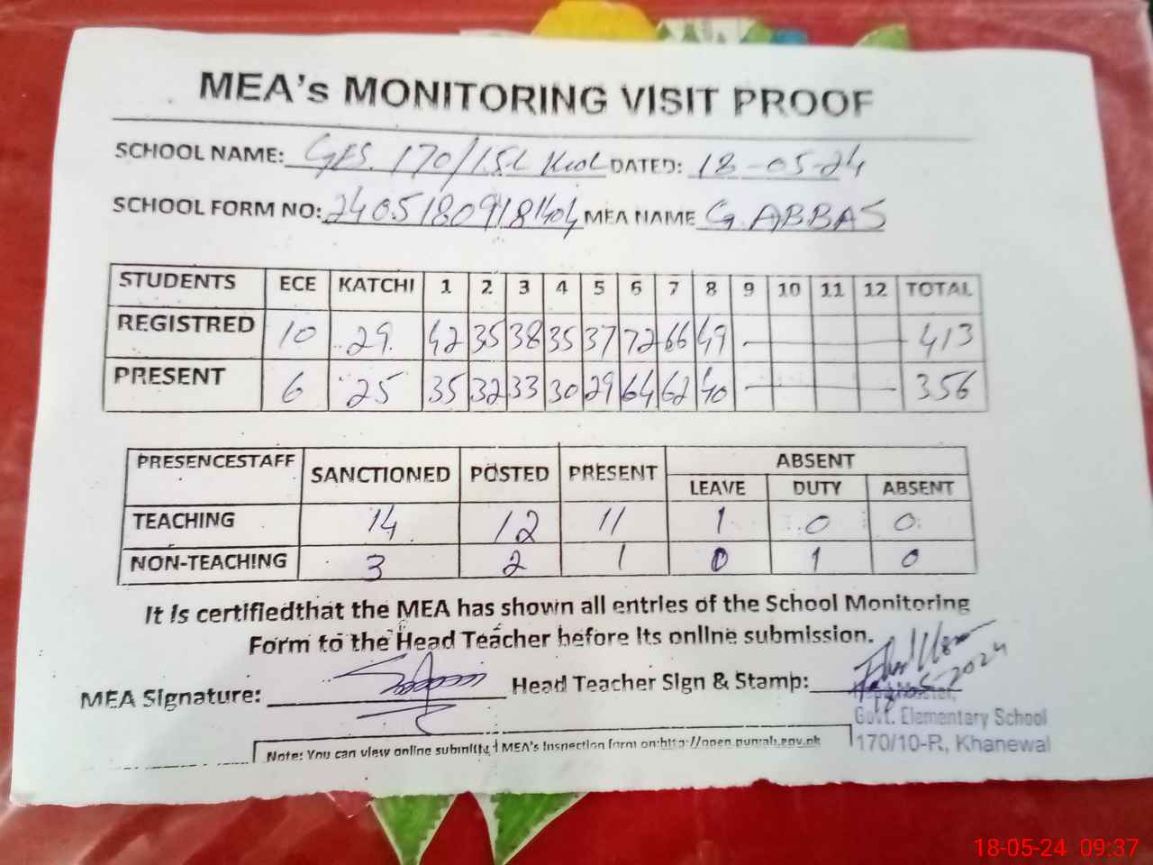 | EMIS Code: 36420069 | Name of School: GES 170/10-R, KHANEWAL | |||