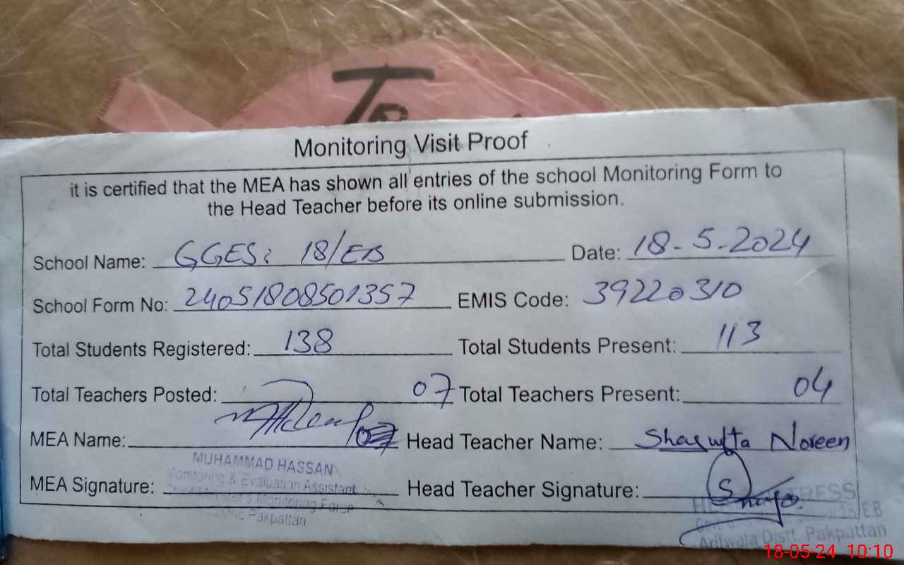 | EMIS Code: 39220310 | Name of School: GGES 18/EB | |||