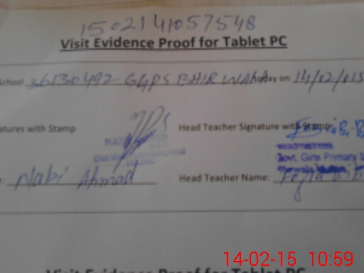 | Attendance Register | Head Teacher | MEA with School | Visit Proof |