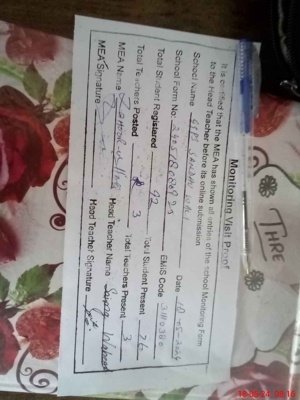 | EMIS Code: 31110380 | Name of School: GGPS SANDHU WALI | |||