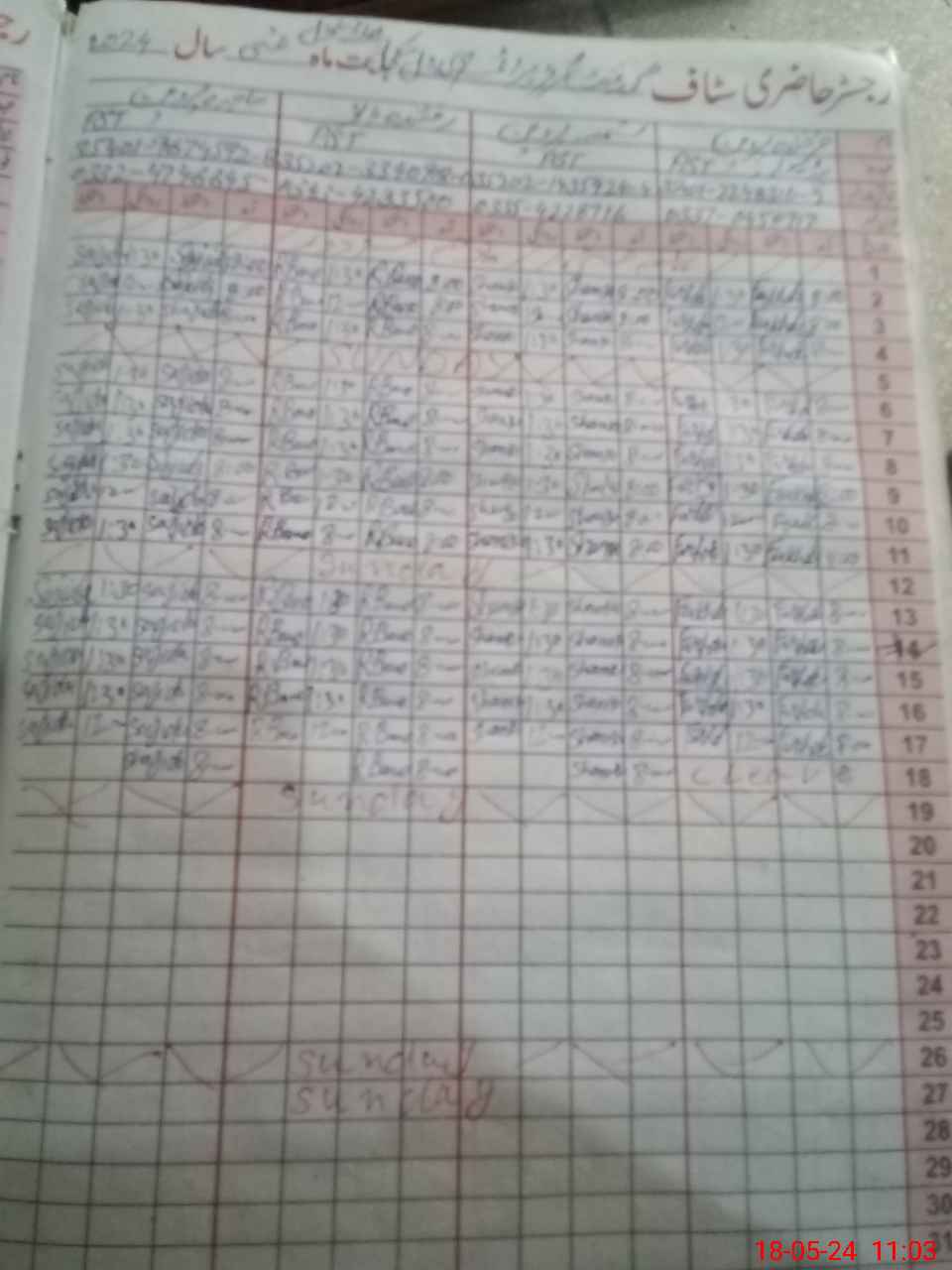 | CNIC | Full Name | Designation | R/C | Absence During Last Calender Month |