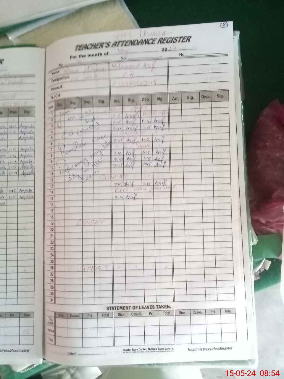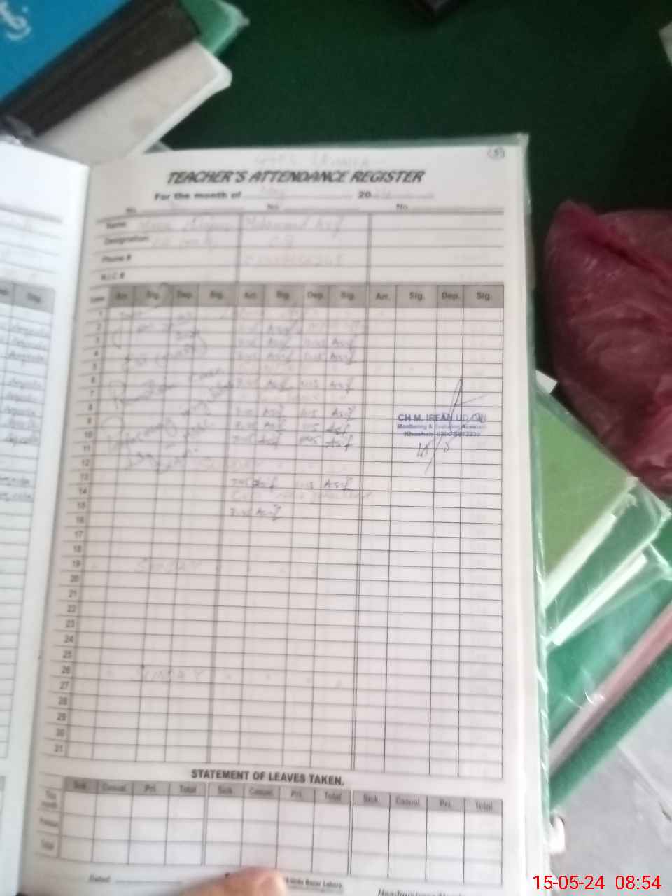 | Name: MR**** AQ**** RI**** Designation: (School Headmaster's/Headmistress's) SSE ( BIO) Phone/Cell Number: 03**** |