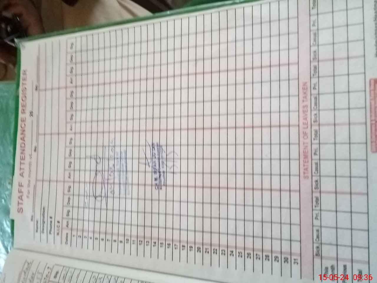 | CNIC | Full Name | Designation | R/C | Absence During Last Calender Month |