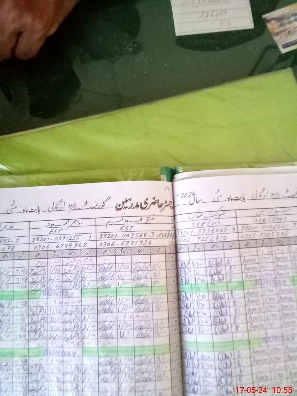 | CNIC | Full Name | Designation | R/C | Absence during last cal. month |