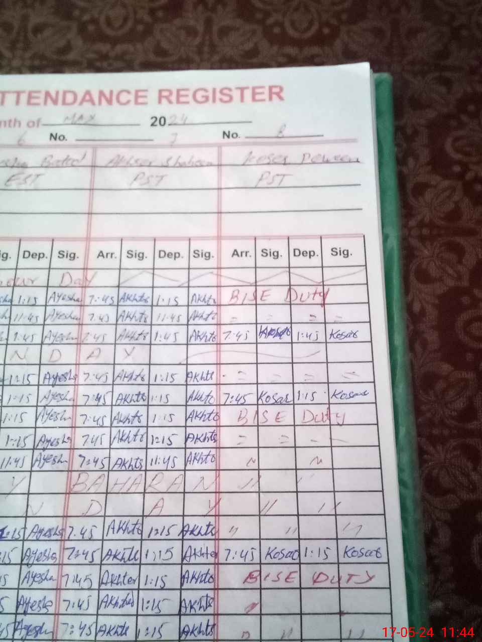 | 38**** | Ak**** Sh**** | PST | Regular | 2 | 0 | 0 | 0 | 0 | 0 | 0 | 0 | 2 | Casual |
