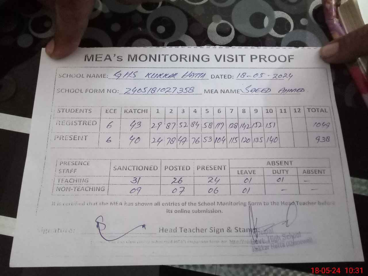 | EMIS Code: 36410026 | Name of School: GHSS KUKKAR HATTA, NAWAN SHEHR | |||