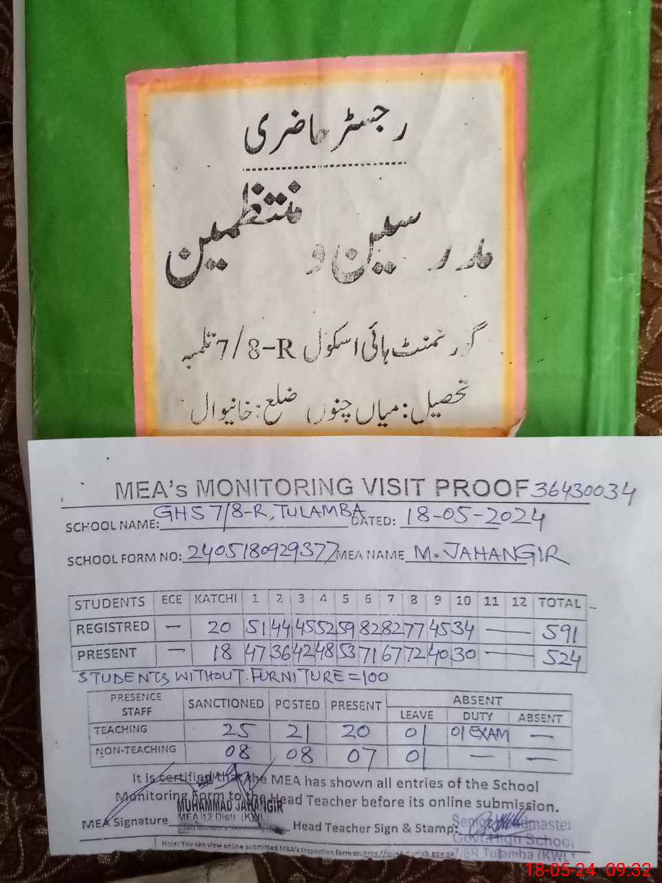 | EMIS Code: 36430034 | Name of School: GHS 7/8-R, TULAMBA | |||