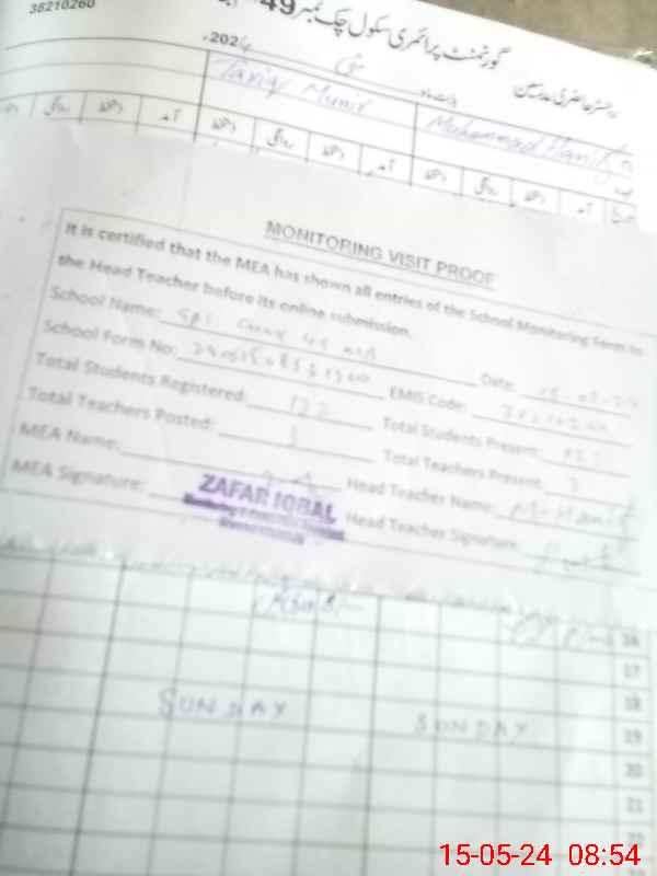 | Certified that this School was Inspected by the Undersigned MEA/DMO Today and the Information Stated Above is as Per Record. | |||||